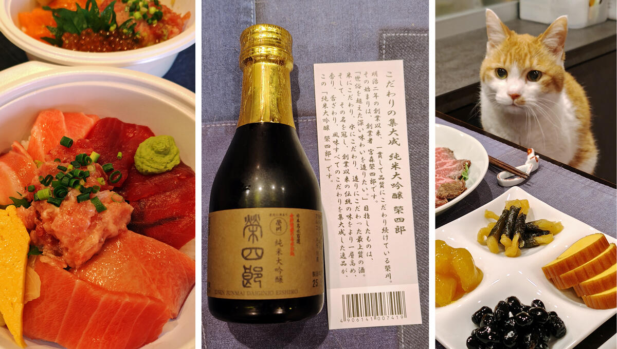 お昼は少しお高いお刺身丼と、夜はお酒におつまみいろいろ。